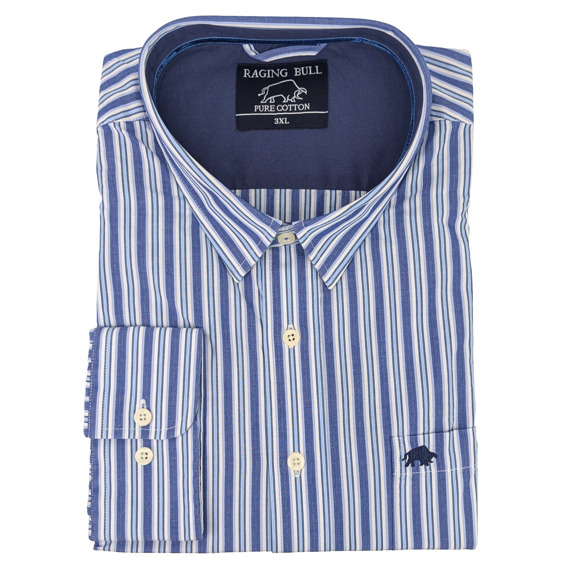 Raging Bull L/S Stripe Poplin Shirt - S1457 - Blue